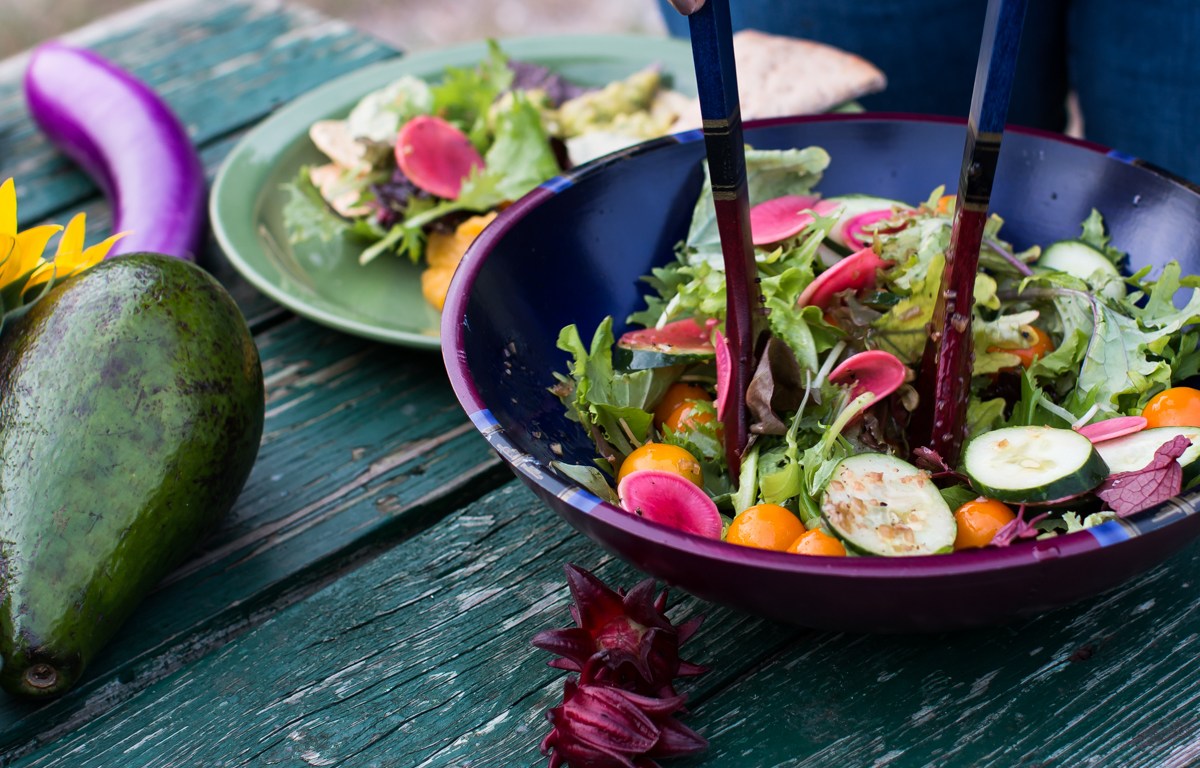 The best salads are ones that have the freshest ingredients, layers of flavor, a variety of textures, and since we eat with our eyes first, lots of vibrant colors. This salad made with a variety of organic produce from our farm checks every box.