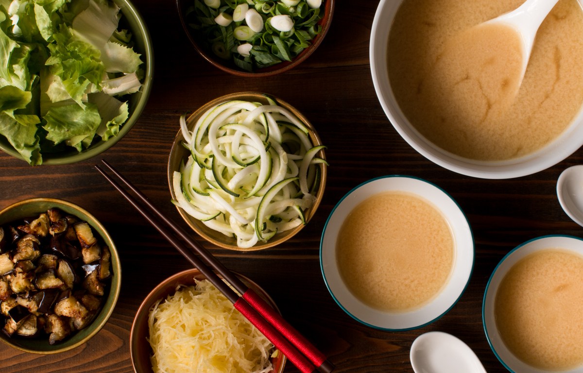 Use a spiralizer, mandolin, food processor, or just thinly slice any type of squash to make the “ramen” noodles for this recipe.