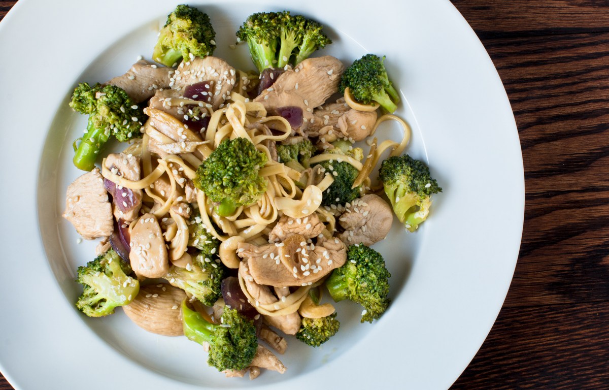 This is the tricky part and mainly because of the pasta. Whether you use fresh pasta or dried, plan on cooking the pasta per the producer’s cooking instructions to coincide with finishing the stir-fry. Fresh pasta takes around 3-4 minutes to cook and dried pasta 11-13 minutes.