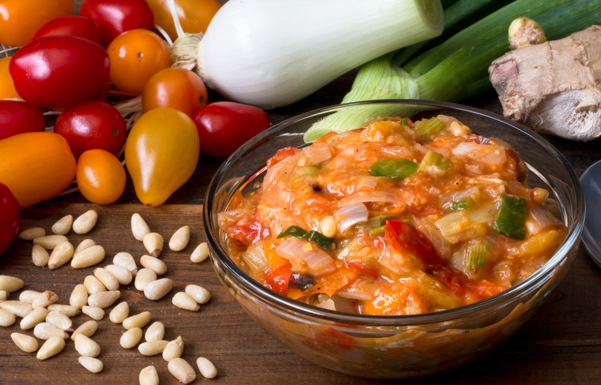- Your roasted cherry tomato, spring onion, and pine nut chutney is ready to serve!