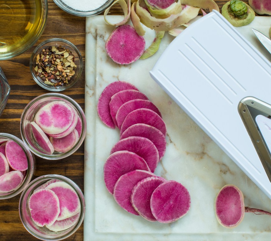 Pickling is a great way to preserve the season’s bounty for off-season enjoyment. It is also a great way to enjoy a favorite product like radishes in a different way. Here we use our watermelon radishes, in this recipe but you can pickle our daikon, white, and even table radishes using this recipe. The only change is that with smaller radishes you may not need … Continue reading Cold Pickled Radishes